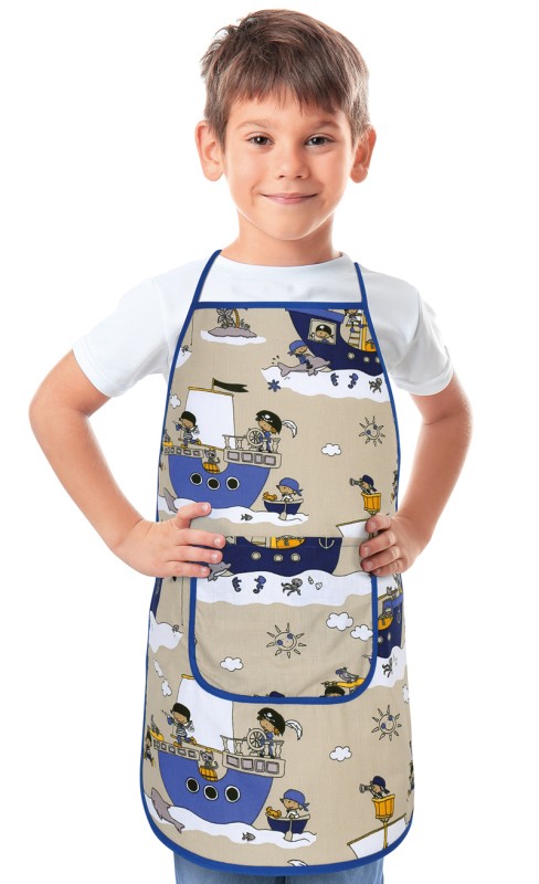| Krátký popis | Dětská zástěrka<br> <br> materiál 100% Bavlna<br> 135g/m2<br> praní na 40°C<br> sušit v sušičce na nízkou teplotu<br> žehlit do 150°C<br> zavazování za krk a v pase<br> vpředu kapsa<br> dvě velikosti podle věku<br> Dětská zástěrka s kapsou, obšitá bavlněnou stuhou, na zavazování.<br> V zástěrce s veselými dětskými motivy bude vaření zábava.<br> Vhodná pro všechny malé kuchaře a kuchařky. | ||||||
