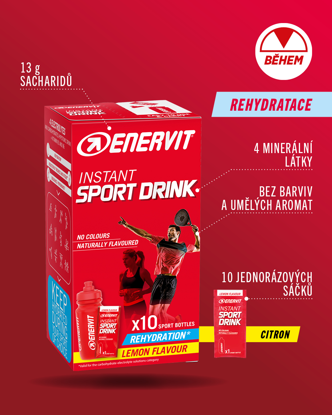 | Krátký popis | Sacharidový iontový nápoj doplňující energii a tekutiny během sportu. |